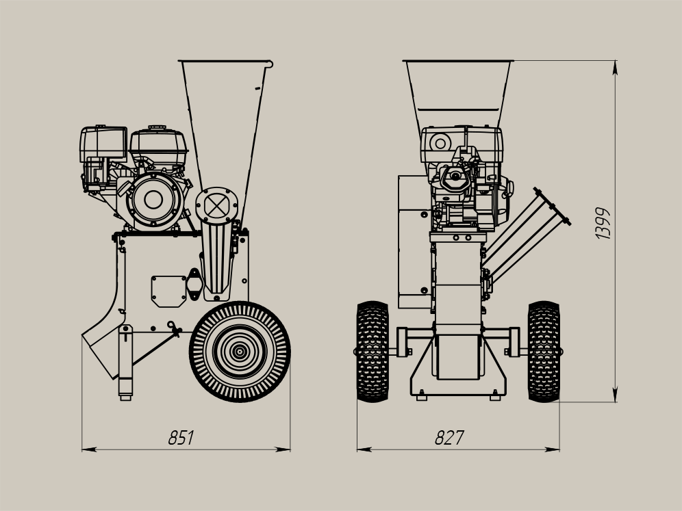 MC-80BD is a combined gasoline wood shredder with two input hoppers. It is designed for shredding branches, vines, leaves, bark, grass and small wood waste with a diameter of up to 90 mm. It is ideal for private households, country estates, gardeners, as well as for seasonal yard or garden maintenance.