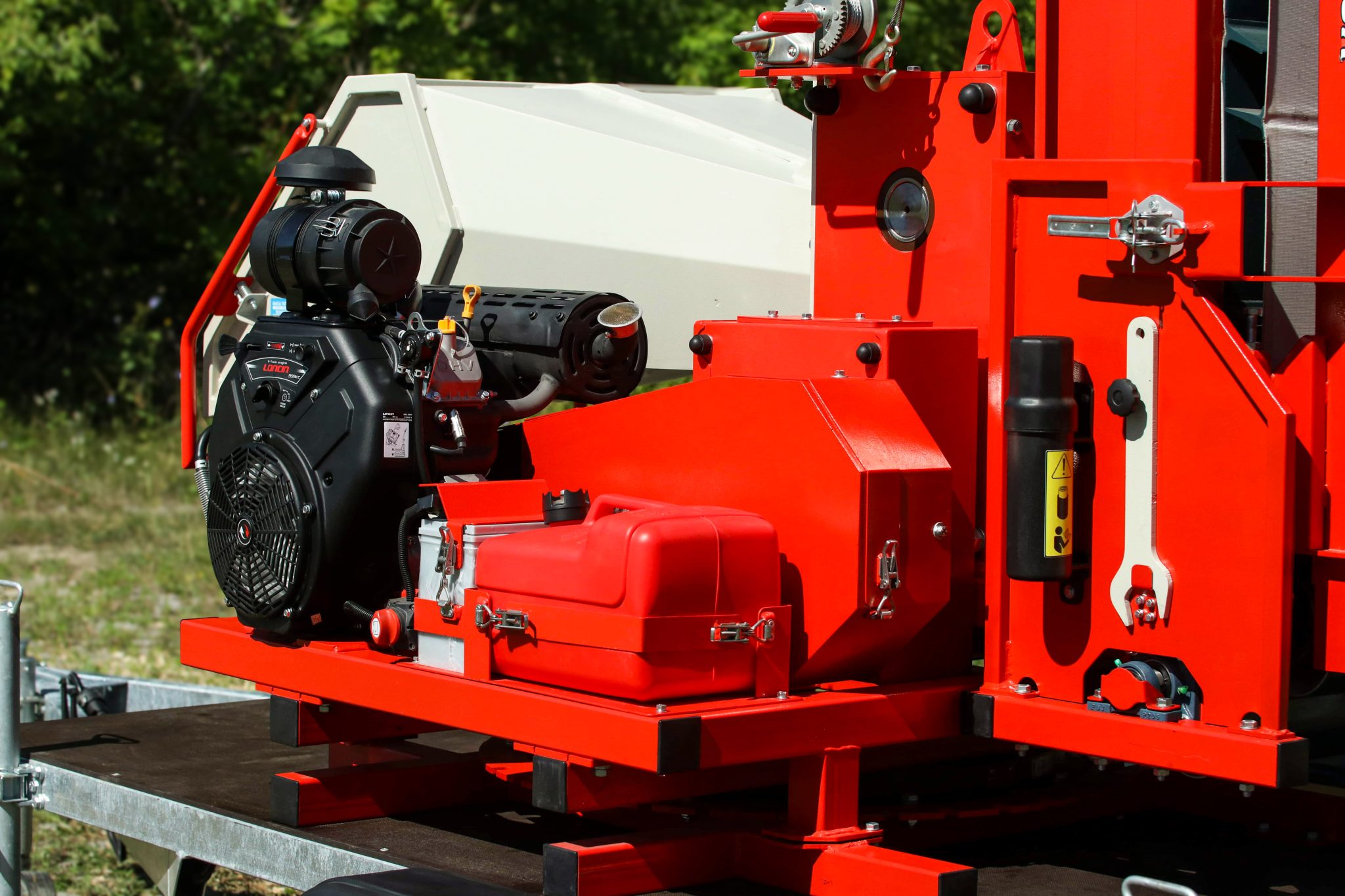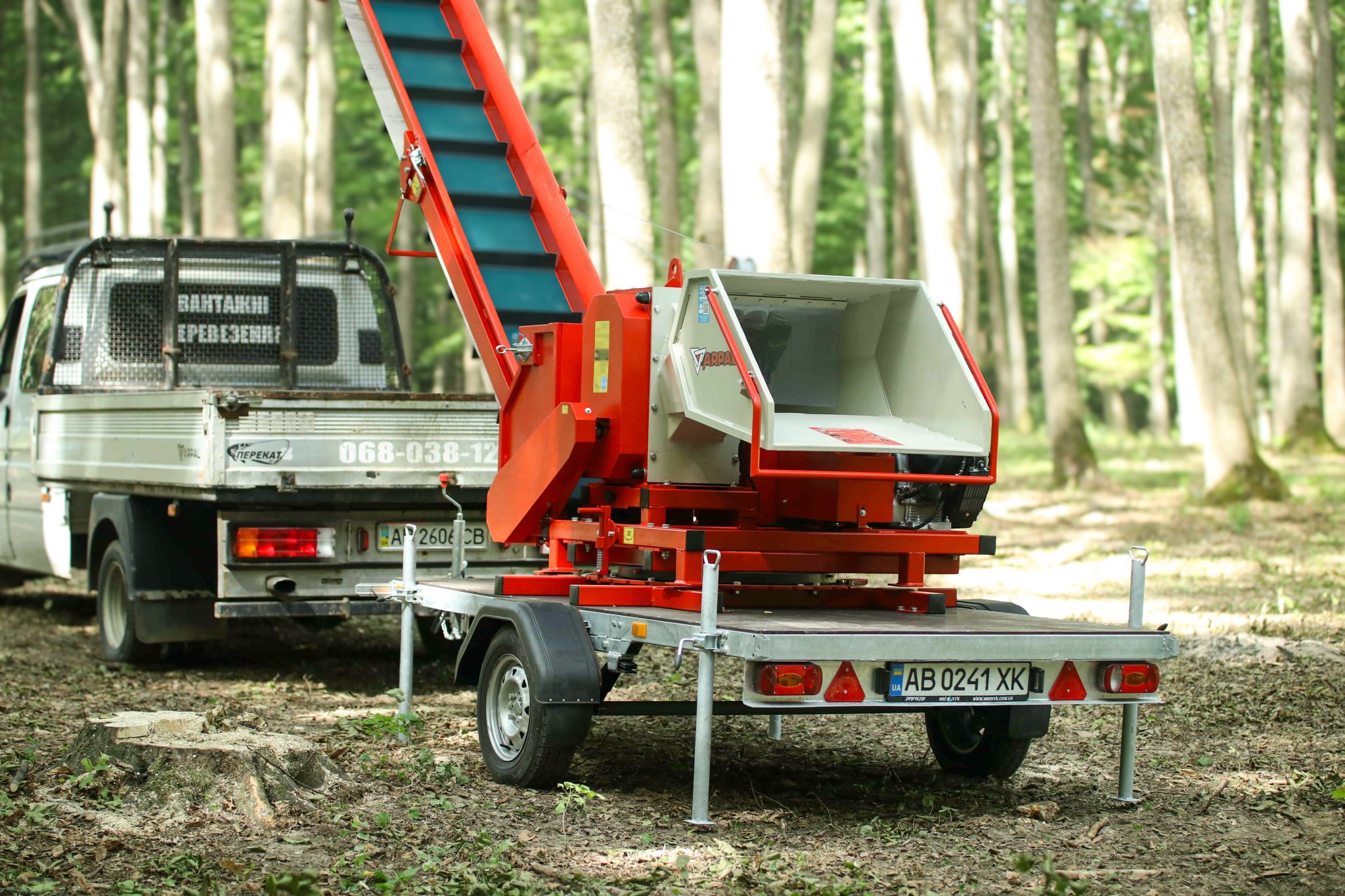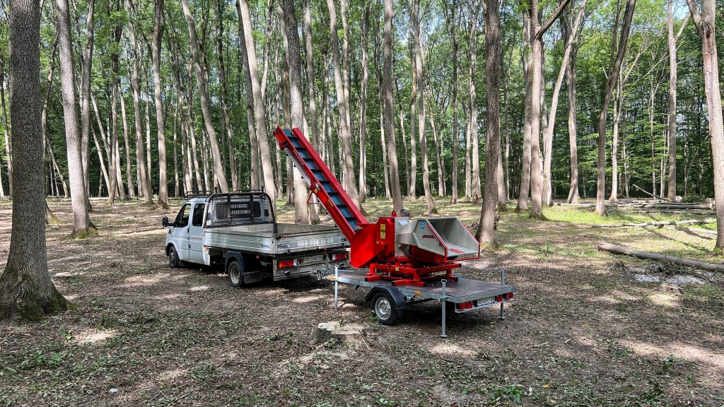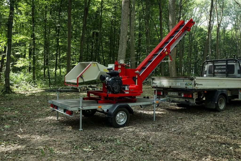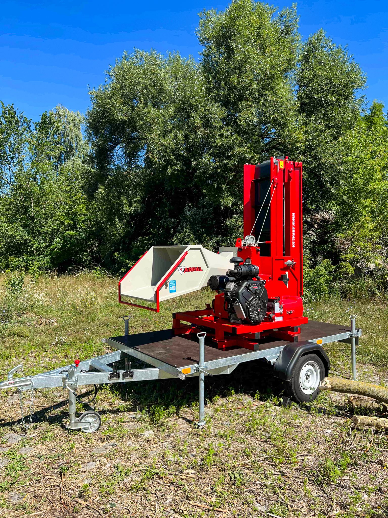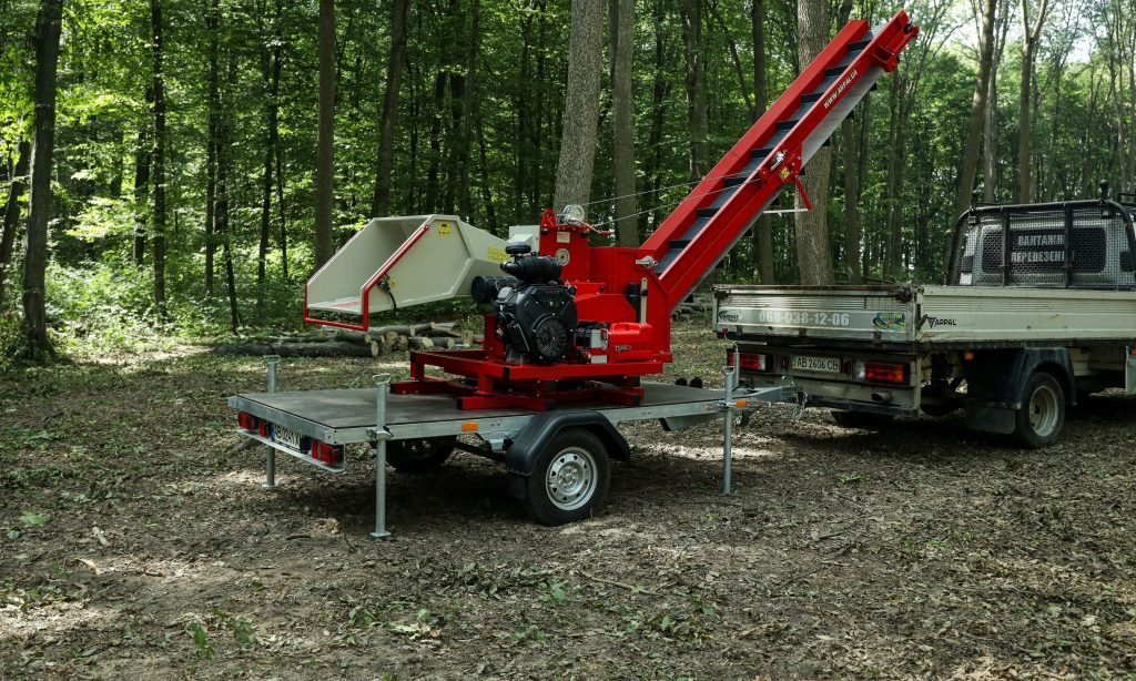 AM-200BD-K is a gasoline-powered wood chipper from the ARPAL MAX series, equipped with a conveyor transporter and mounted on a trailer-based platform capable of 360° rotation. The wood chipper is designed for processing the thickest branches with a diameter of up to 200 mm. Maximum power designed for professionals handling large volumes, including forestry operations, municipal services, farmers, agribusinesses, and contractors managing extensive areas. Perfect for recycling wood waste from land clearing or forest maintenance, and ideal for producing cost-effective fuel.