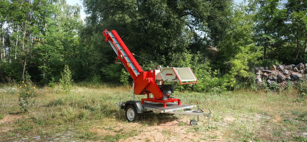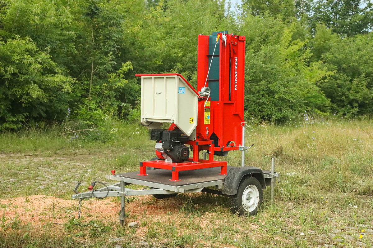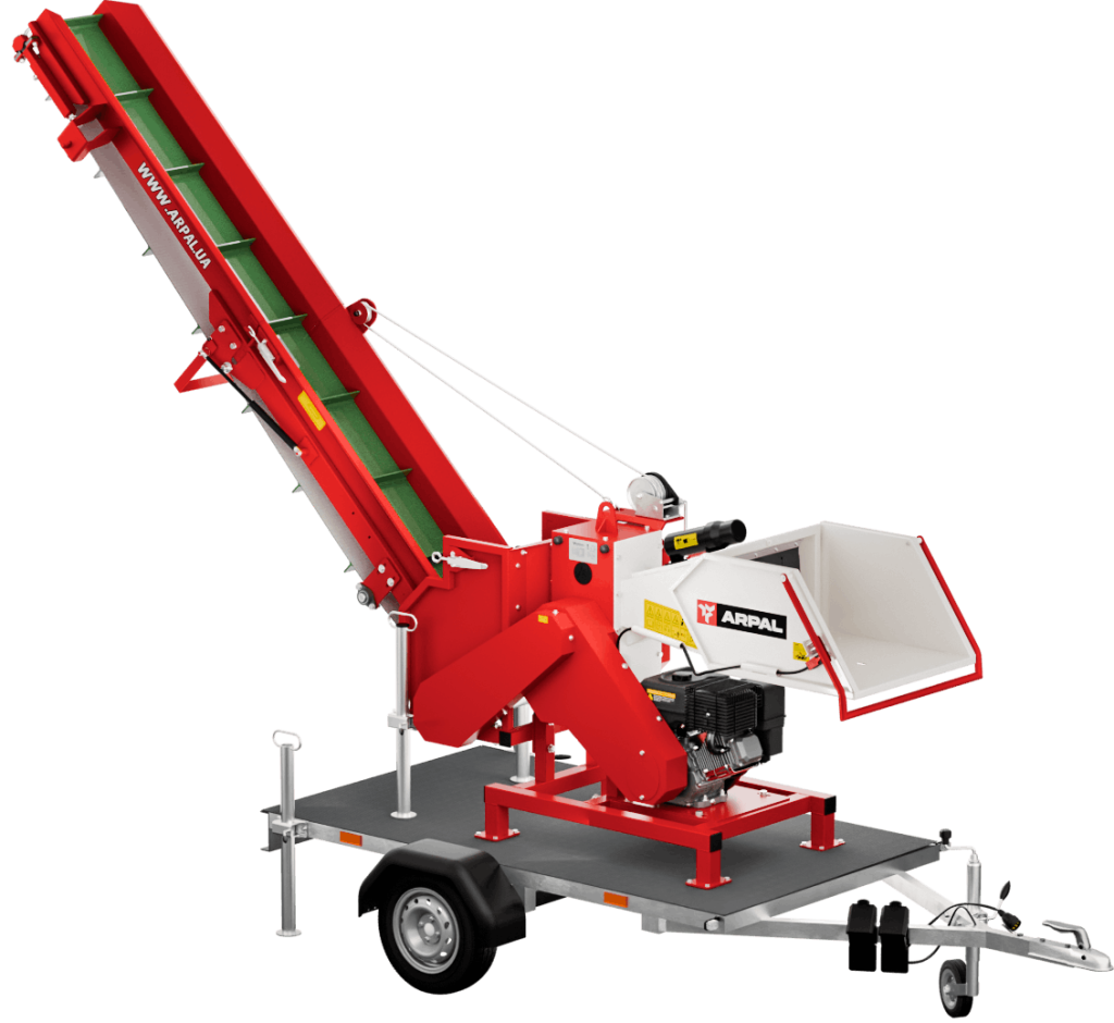 AM-120BD-K is a gasoline-powered wood chipper from the ARPAL PRO series equipped with a conveyor transporter and mounted on a trailer, designed for quick disposal of branches with a diameter of up to 120 mm. Perfect for both home and professional use, including gardening, arborists, housing utility services, and landscape design. It is the go-to choice for anyone who needs a convenient, affordable, and effective solution for post-pruning cleanup, shrub trimming, and seasonal garden work. Combining compact size with ease of use, this model delivers reliable, safe operation while fully complying with European quality and safety.