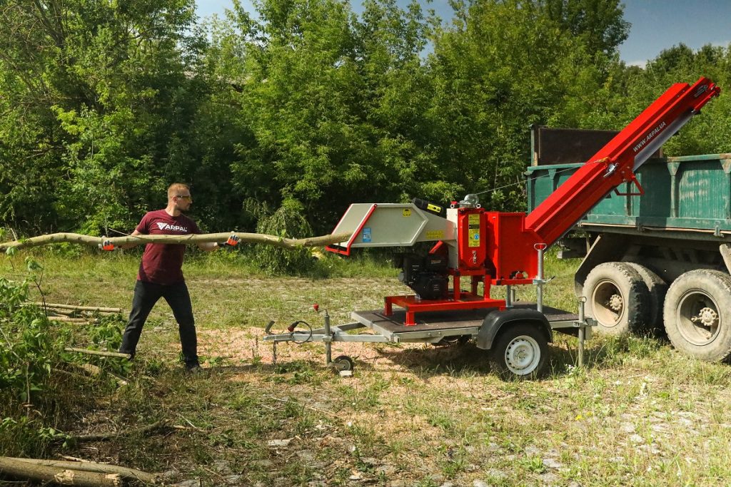 Maximum productivity — minimum effort. The rotary conveyor ensures continuous feeding of shredded material to a height of up to 3.3 metres directly into a trailer, bag or other container.