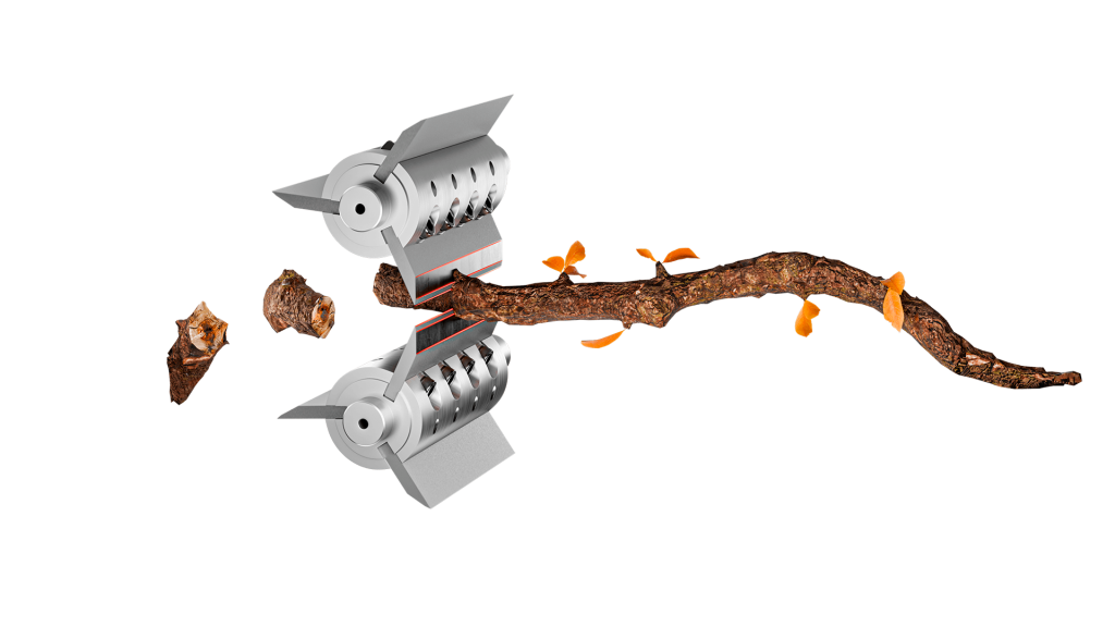 The knives can process up to 200 m³ of wood on a single sharpening, allowing you to work longer without stopping and maintain high shredding efficiency.
